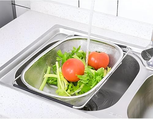Generic - مصفاة من الفولاذ المقاوم للصدأ موفرة للمساحة بفتحات واسعة، لشطف وتجفيف الخضراوات والفواكه والأطعمة المطبوخة في المطبخ العصري