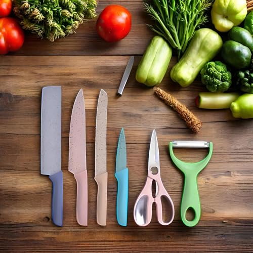 Generic - أدوات تحضير الطعام، طقم سكاكين أنيقة مكونة من 6 قطع مع شفرات متخصصة لضمان دقة التقطيع والطهي بسلاسة