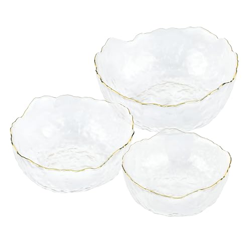 Generic - بولات من الزجاج الشفاف بتصميم حديث لتقديم الطعام مع حواف بلون ذهبي للسلطات والفواكه والمكرونة والفشار والوجبات الخفيفة، 3 قطع