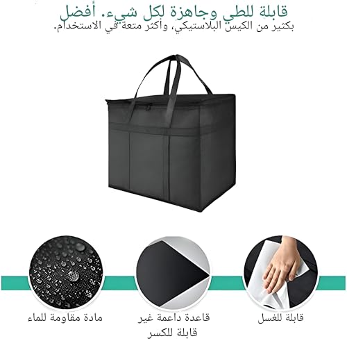 - مقاس 60 × 40 + 40 سم، توفر هذه الحقيبة سعة مثالية لحمل المشروبات والمواد الغذائية الصغيرة بشكل مريح أثناء النقل؛ يسمح تصميمها القابل للطي بسهولة التخزين عند عدم الاستخدام، مما يجعلها إضافة عملية لأي مطبخ أو إعداد توصيل.