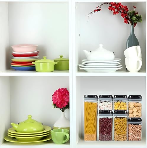 Generic - مجموعة علب حفظ الطعام بأغطية آمنة من 7 قطع من بلاستيك خالي من مادة البيسفينول أ، تتضمن ملصقات ملونة، ومناسبة للتخزين في المطبخ والرفوف