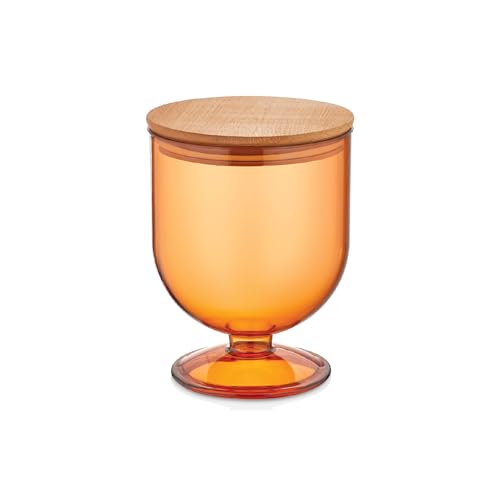 Generic - حاوية تخزين الطعام - حاوية تخزين طعام وبسكويت اكريليك محكمة الغلق سعة 1.4 لتر مع غطاء خشبي انيق، بني شفاف