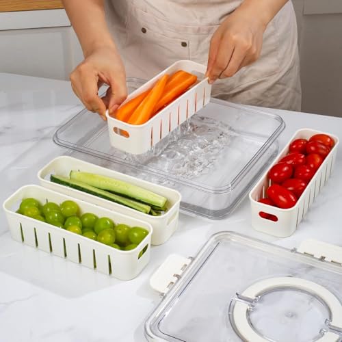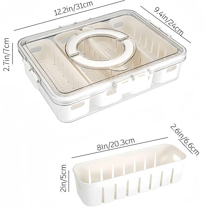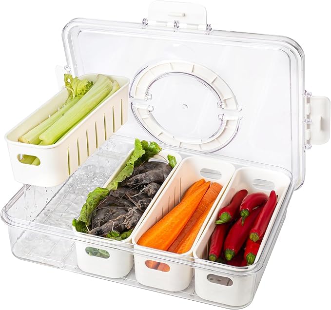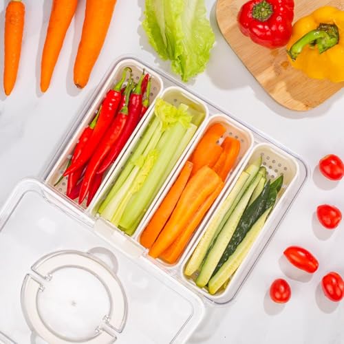 - تخلص من فوضى الثلاجة. تحافظ هذه العلبة على الفواكه والخضروات والوجبات الخفيفة منفصلة مع 4 أقسام تخزين ذكية، لا مزيد من الخلط أو الفوضى. ستصبح ثلاجتك مرتبة ومنظمة من جديد.