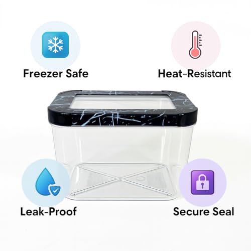 Generic - حاوية تخزين الطعام وصندوق بلاستيكي محكم الغلق، منظم مطبخ مع غطاء رخامي أسود مانع للتسرب وخالي من البيسفينول أ (1.8 لتر)