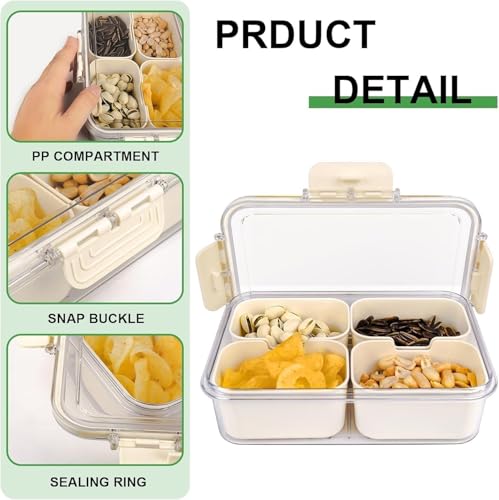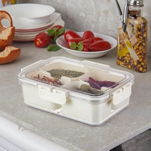 Generic - حاوية تخزين الطعام - صندوق تخزين مقسم 1500 مل مع غطاء، منظم ثلاجة بـ 4 اقسام للوجبات الخفيفة والفواكه والمكسرات والحلويات والتوابل