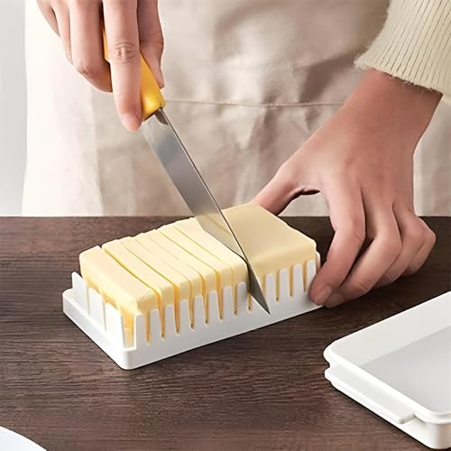 - يتميز طبق الزبدة الفريد هذا بنظام تقسيم مصمم خصيصًا مع غطاء مجهز بقضبان متوازية، مما يضمن تقطيع الزبدة بشكل موحد إلى أجزاء دقيقة بوزن 5 غرام أو 10 غرام وفقًا لاحتياجاتك، كما أنه يبسط التخزين من خلال السماح لك بالحفاظ على قطع الزبدة داخل الطبق في الثلاجة.