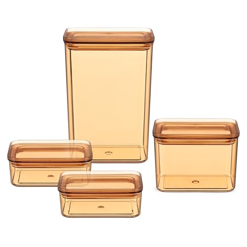 Generic - طقم علب تخزين الطعام، 4 قطع، اكريليك، لون كهرماني، 400 مل/900 مل/2100 مل