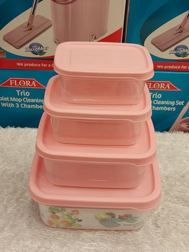Generic - طقم علب تخزين الطعام، 4 قطع، أغطية بينك، سعة 1 - 4 لتر، بلاستيك شفاف