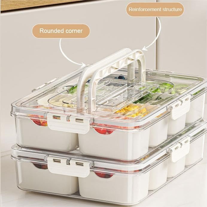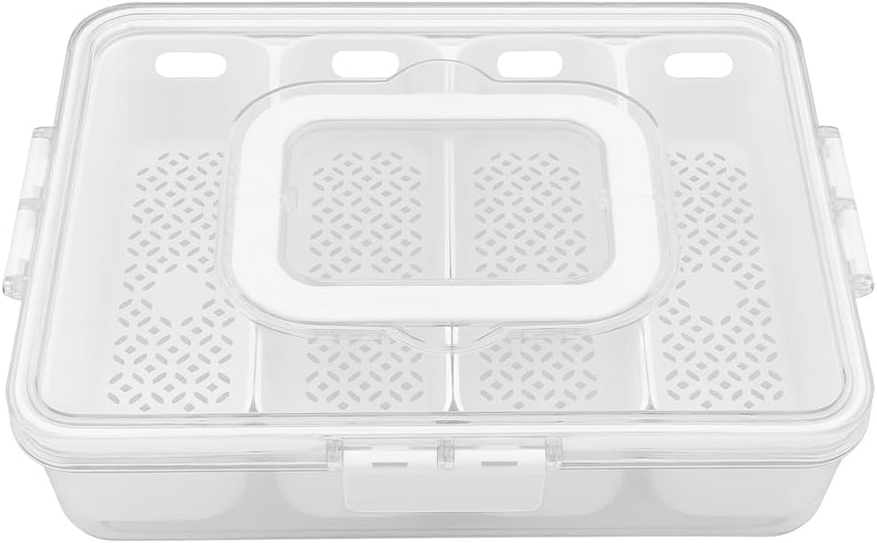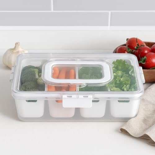 - تحافظ حاوية تخزين الطعام المزودة بغطاء على الوجبات منفصلة بدقة في 4 أقسام، لذلك تبقى الفواكه طازجة، ولا تختلط الخضراوات، وتبدو بقايا الطعام منظمة بدلاً من نسيانها في الجزء الخلفي من الثلاجة.