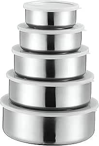- طقم 5 قطع متنوع المقاسات: يشمل مقاسات 10، 12، 14، 16، و18 سم لتلبية جميع احتياجات تخزين الطعام المختلفة، من الوجبات الصغيرة إلى الكبيرة.