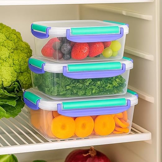 - ثلاجة مرتبة، بدون تخمين: تعمل حاويات تخزين الطعام هذه كمنظم ثلاجة ذكي مع أغطية محكمة الإغلاق تحافظ على الطعام طازجًا. آمن للاستخدام في الميكروويف وغسالة الأطباق لإعداد سريع وسهل التنظيف في أيام الأسبوع المصرية المزدحمة.