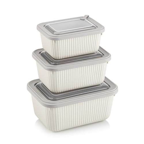 Generic - مجموعة علب تخزين الطعام، 3 قطع، آمنة للاستخدام في الميكروويف، 600 مل/1100 مل/1750 مل، ألوان متعددة، صنع في تركيا، لون بيج