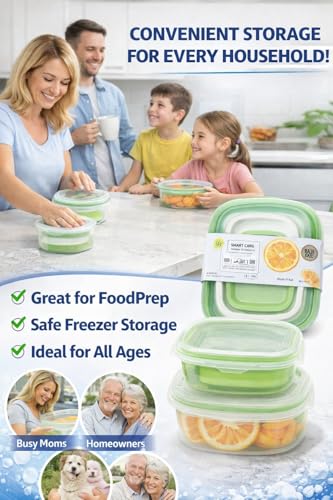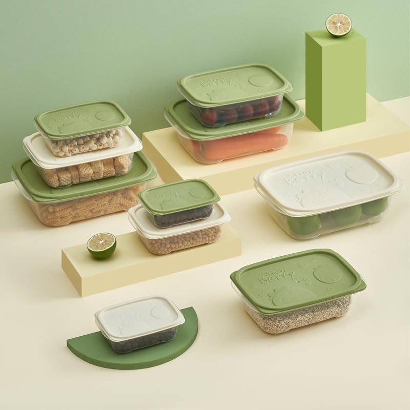 - قابلة للتكديس وموفرة للمساحة - يساعد التصميم المتداخل على تنظيم الخزائن أو الثلاجة أو حقائب الغداء بكفاءة.