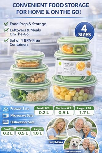 - 4 مقاسات عملية - تتضمن أربعة أحجام مختلفة للحاويات لتخزين الوجبات الخفيفة والفواكه وبقايا الطعام والوجبات وإعداد الطعام بسهولة.