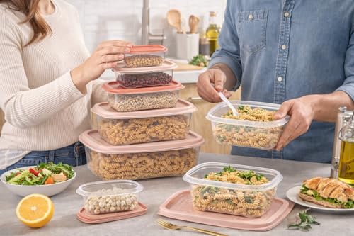 Generic - مجموعة حاويات تخزين الطعام، 4 احجام من البلاستيك مع اغطية محكمة الاغلاق، حاويات اعداد الوجبات قابلة لاعادة الاستخدام للمطبخ والفريزر والميكروويف (بينك)