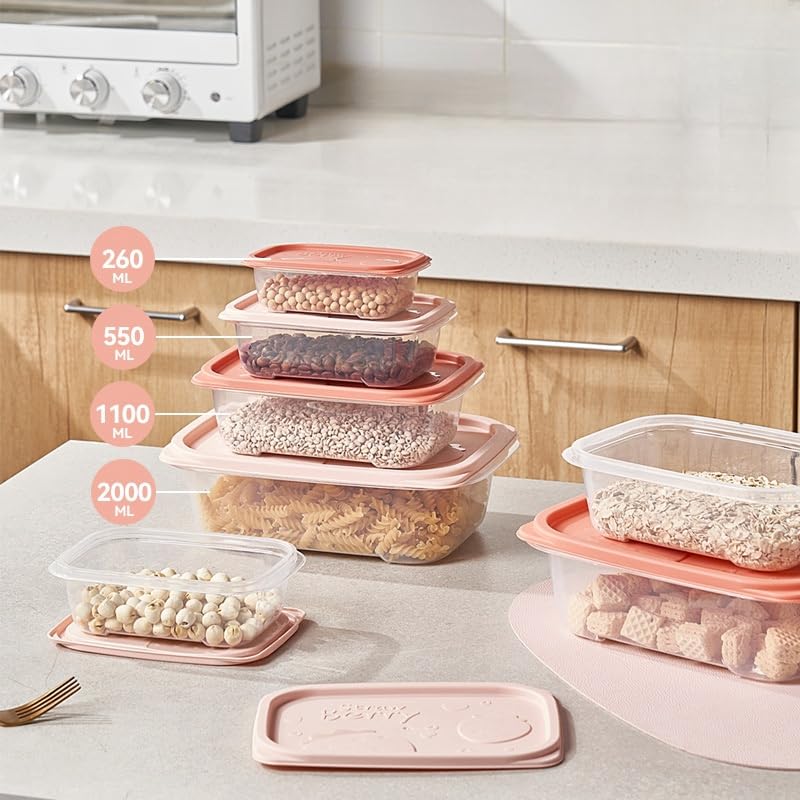 - قابلة للتكديس وموفرة للمساحة - يساعد التصميم المتداخل على تنظيم الخزائن أو الثلاجة أو حقائب الغداء بكفاءة.