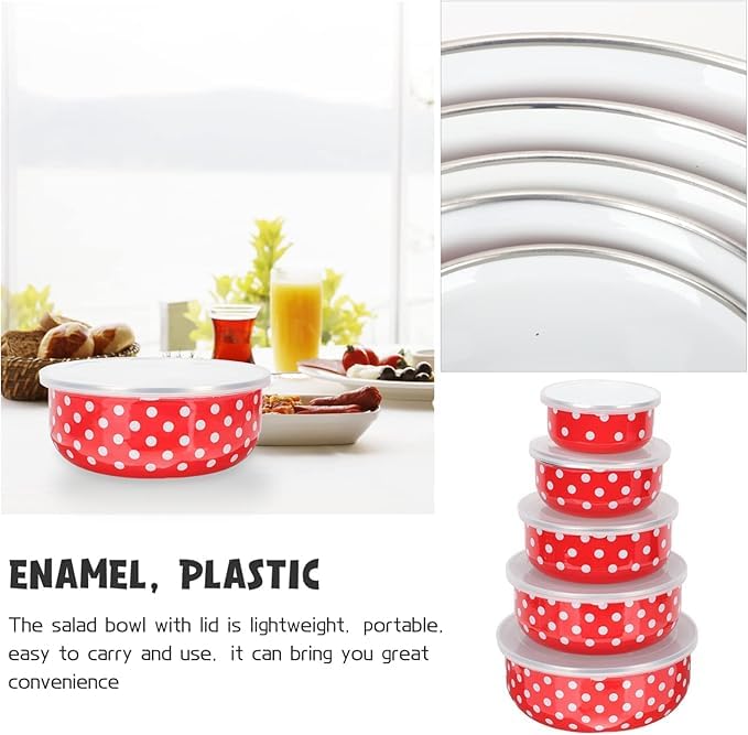 Generic - حاويات تخزين طعام، مصنوعة من البلاستيك، مجموعة من 5 قطع، متداخلة بتصميم منقط أحمر