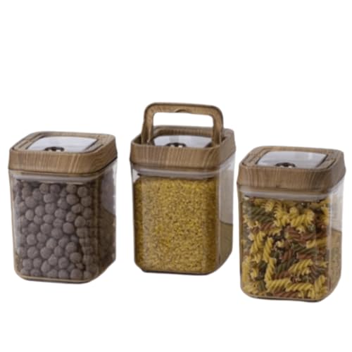 Generic - مجموعة علب تخزين الطعام - علب اكريليك مع غطاء خشبي - مجموعة من 3 قطع × 900 مل
