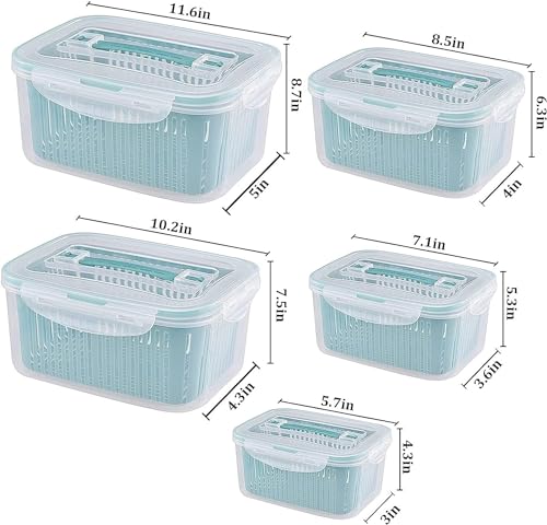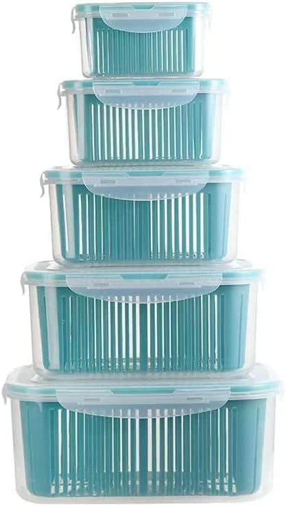 Generic - مجموعة حافظات تخزين طعام من 5 قطع مع مصفاة وحافظة لتخزين الطعام مع رف تنقيط وغطاء وسلة غسيل ووعاء تجفيف وصندوق فواكه ولانش بوكس وعلب تخزين وصندوق جبن
