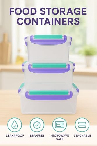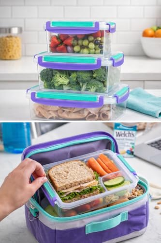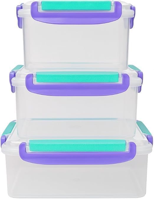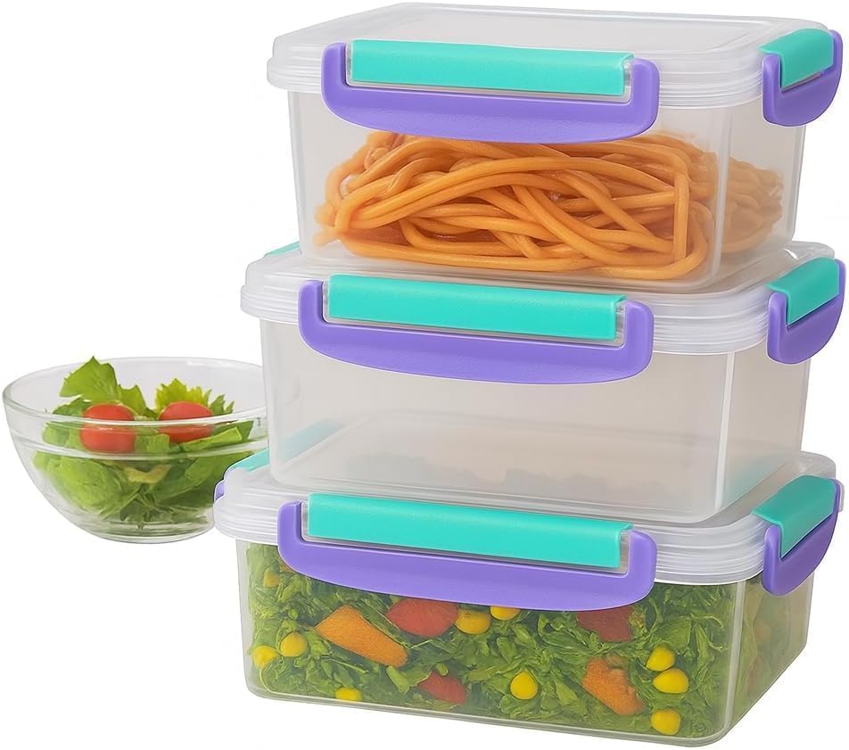 Generic - مجموعة حاويات تخزين الطعام مع اغطية قفل، سعة 500 مل/1000 مل/1500 مل، صناديق بلاستيكية محكمة الغلق مانعة للتسرب، خالية من BPA، حاويات مطبخ قابلة للتكديس للثلاجة والغداء (ارجواني، مربع)