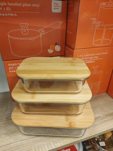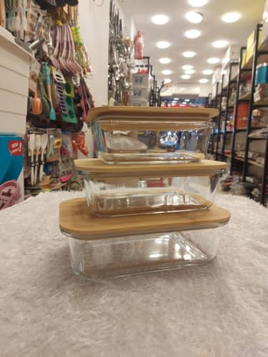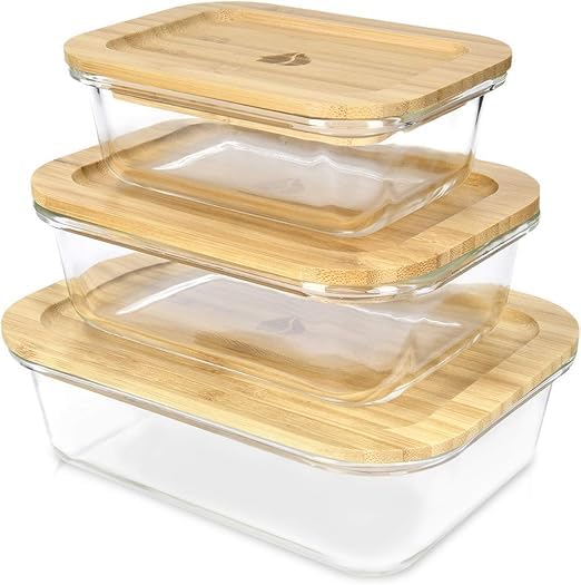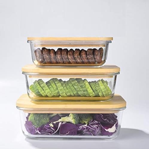 Generic - علبة تخزين طعام بأغطية من البامبو، مجموعة من 3 قطع، 20×15/18×13/15×10 سم، آمنة للاستخدام في الميكروويف والفريزر