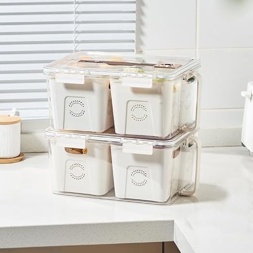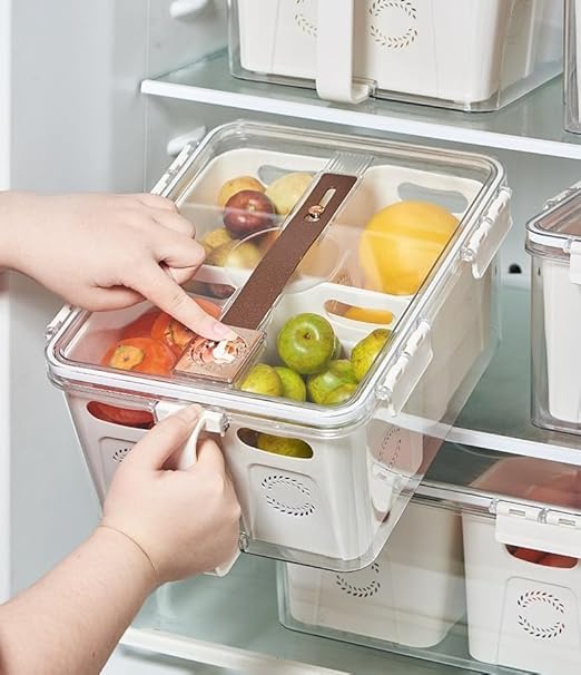 - سعة كبيرة 7000 مل - واسعة بما يكفي لحمل أجزاء بحجم العائلة من الفواكه أو الخضروات أو بقايا الطعام دون إهدار مساحة الثلاجة.