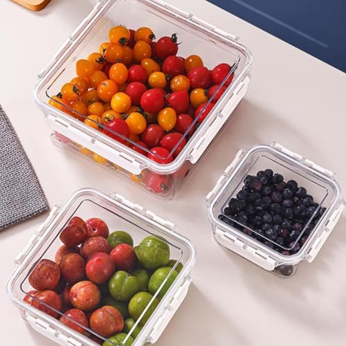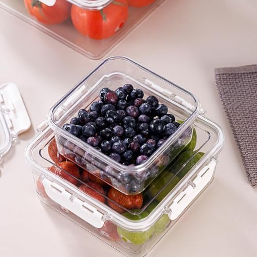 Generic - حاويات تخزين الطعام مع اغطية، مجموعة منظم الثلاجة من 4 قطع مع سلة تصريف، صناديق ثلاجة قابلة للتكديس، تخزين الخضروات والفواكه خالية من BPA، صناديق تنظيم المطبخ