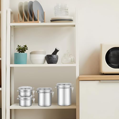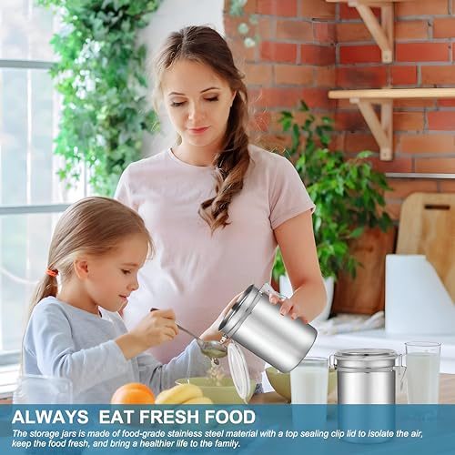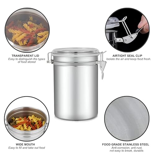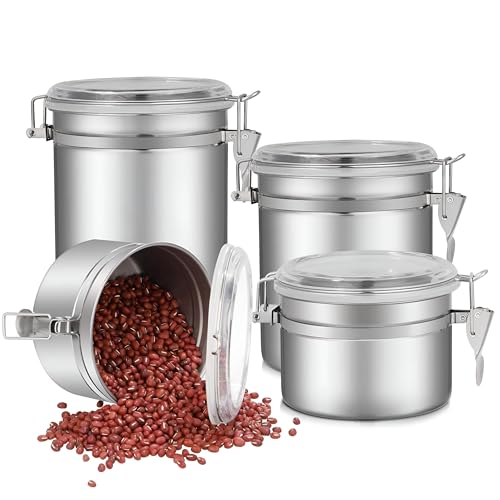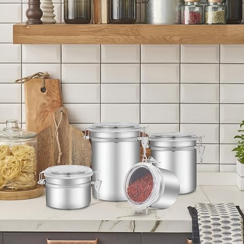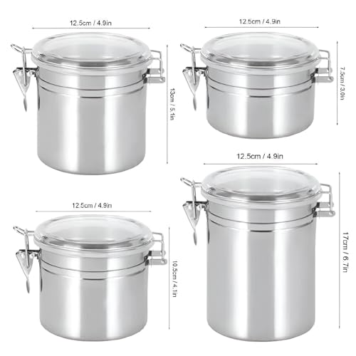 Generic - صناديق تخزين الطعام بأغطية، حاويات متينة محكمة الإغلاق من الفولاذ المقاوم للصدأ بأغطية شفافة ومشابك قفل قوية لتخزين القهوة والشاي والسكر والوجبات الخفيفة، طقم من 4 قطع
