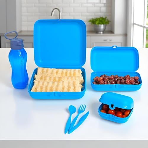 Generic - مجموعة تخزين الطعام - ست حاويات متعددة الاستخدامات بمقاسات 1200 مل و600 مل، تتضمن ادوات المائدة، خالية من BPA، تصميم قابل للتكديس للوجبات اليومية، مثالية للطلاب والمحترفين وأنماط الحياة النشطة (ازرق