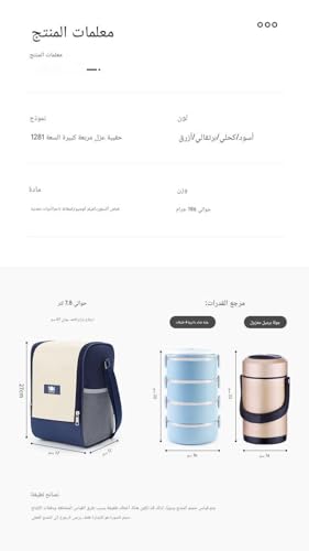 - سعة واسعة تحمل بسهولة حاويتين كبيرتين للطعام والفواكه والوجبات الخفيفة والمشروبات، مما يضمن التغذية طوال اليوم دون القلق بشأن المساحة.