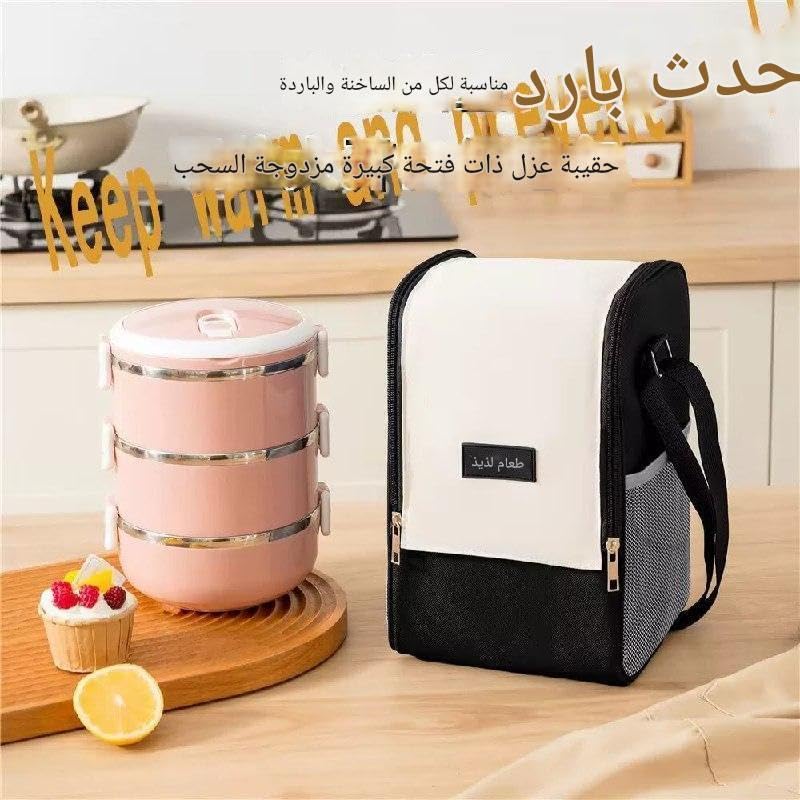 - حماية مزدوجة الطبقات مع بطانة من الألومنيوم ونسيج خارجي مقاوم للماء والزيت يحمي الطعام طازجًا ويمنع التسربات أو البقع الفوضوية.