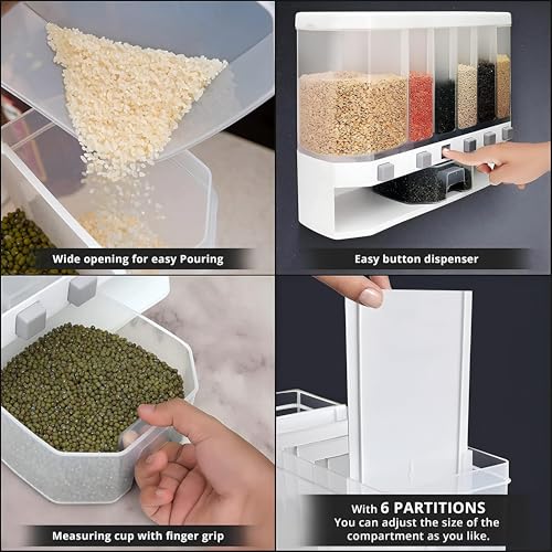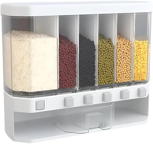 Generic - تخزين الطعام – موزع جداري مزود بـ 6 حاويات موفرة للمساحة للمطبخ، مثالي لتخزين الأرز والمكسرات والوجبات الخفيفة، بسعة 10 لترات مع كوب قياس عملي