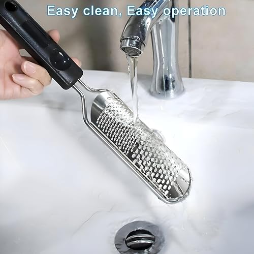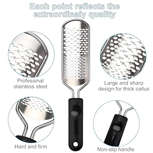 - تم تصميم أداة الستانلس ستيل عالي الجودة، والتي تتميز بسطح مسطح وحاد مصمم للتخلص من الجلد الميت والخشب والمتطرف بفعالية من الأقدام الرطبة والجافة، مما يوفر نتائج تشبه صالونات التجميل في المنزل.