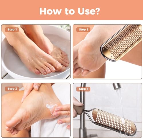 - أداة التخلص من الجلد الميت - تعمل أداة تقشير القدم وإزالة الجلد الميت بشكل جيد على الأقدام الجافة، كما أنّها تؤدي مهمتها بامتياز أثناء الاستحمام أو بعد نقع الأقدام، مع تجنب تطاير الجلد الميت في المكان. يعتبر هذا المنتج بمثابة الحل الأمثل لإزالة مسامير القدم المتشققة، مما يجعل القدمين ناعمة ولطيفة وجميلة مرة أخرى.