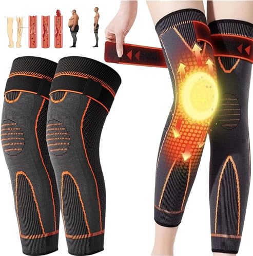 Generic - واقي ركبة ضاغط بطول القدم بشريط لاصق للتثبيت، دعامة ضغط ذاتية التدفئة للقدم والركبة لآلام التهاب المفاصل والدعم وتخفيف الدوالي وإزالة تورم الساق (1 قطعة)، نسيج مرن ضاغط