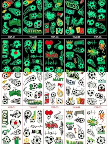 Generic - ملصقات تاتو لامعة مؤقتة مضيئة في الظلام بتصميم كرة القدم، عبوة من 10 أوراق، YKA