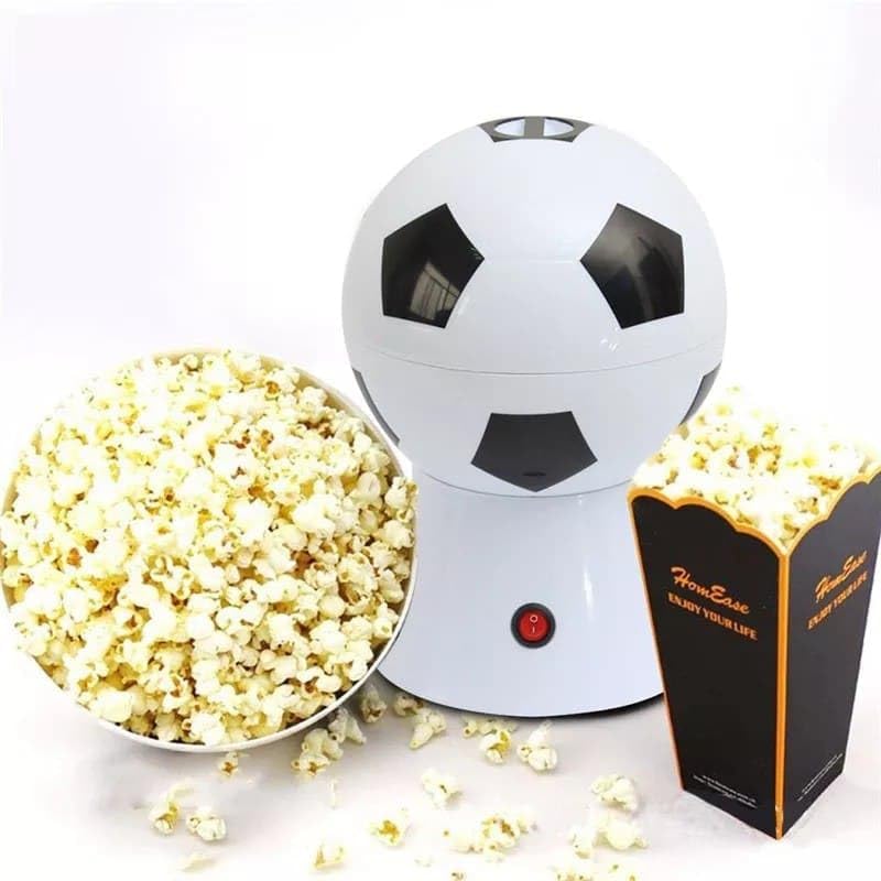 Generic - آلة صنع الفشار بتصميم كرة القدم، أبيض وأسود، 27 سم، مع زر تشغيل أحمر