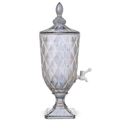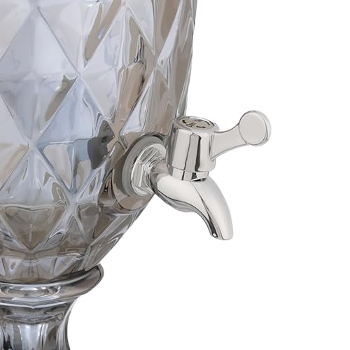 - تصميم أنيق: موزع عصير مذهل يتميز بنمط متطور مقطوع بالألماس على زجاج رمادي دخاني مع غطاء مزخرف مزخرف، مما يضيف لمسة من الأناقة الكلاسيكية إلى أي إعداد طاولة أو عرض بوفيه