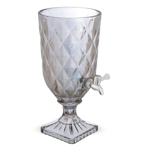 Generic - موزع عصير مع غطاء، 3 لتر، ماسة دائرية، زجاج - رمادي سموكد