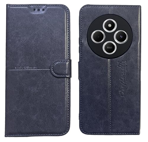Generic - حافظة كايو قابلة للطي من الجلد الصناعي بالكامل لهاتف شاومي ريدمي 14C مع مسند تغطية كاملة حماية للكاميرا ازرق