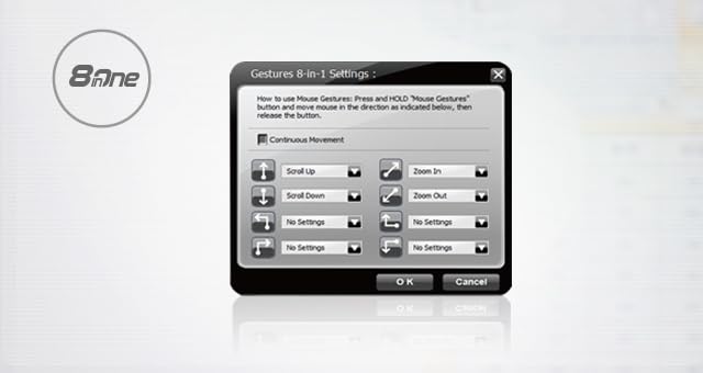 - 8 في واحد: 8 إيماءات لأداء أوامر مفتاح الاختصار القابلة للاختيار.