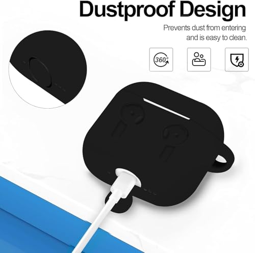 Generic - جراب سيليكون لسماعات ايربودز 4، متوافق مع جراب ايربودز الجيل الرابع (2024)، غطاء حماية من السقوط مع سلسلة مفاتيح (اسود)