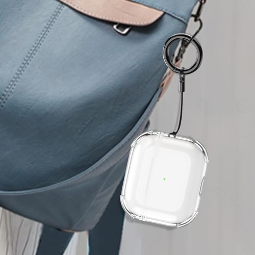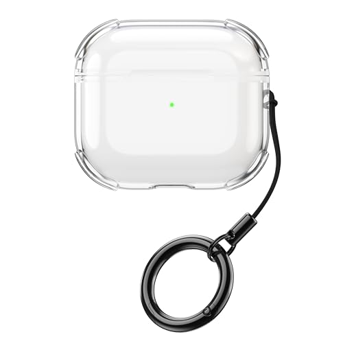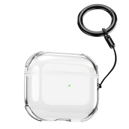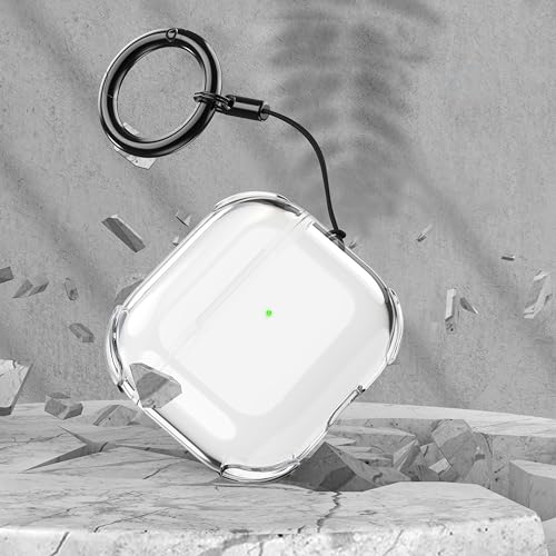 STRAID - غطاء حماية لسماعات ايربودز الجيل الرابع 2024، مقاوم للصدمات من الدرجة العسكرية، بولي يوريثين حراري ناعم شفاف للغاية مضاد للاصفرار لسماعات ايربودز 4 مع مشبك دائري بحبل قصير (شفاف)