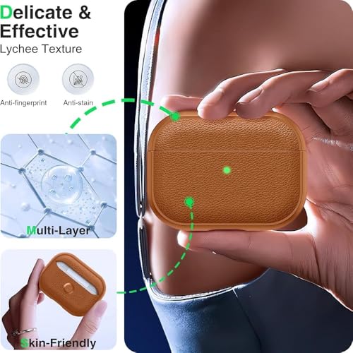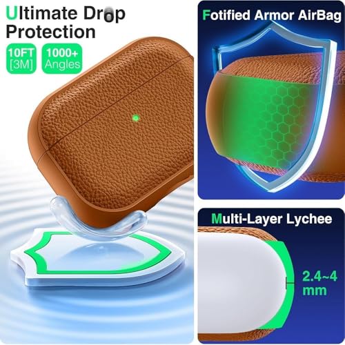 - خامة عالية الجودة: غطاء حماية سماعات ايربودز برو من الجيل الثالث (2025) مصنوع من مادة بولي يوريثين مقاوم للحرارة ناعمة ومتينة وجلد صناعي، ويوفر حماية كاملة ضد الخدوش والصدمات والانزلاق، كما أن السطح معالج برذاذ زيت خاص لمقاومة بصمات الأصابع والغبار.