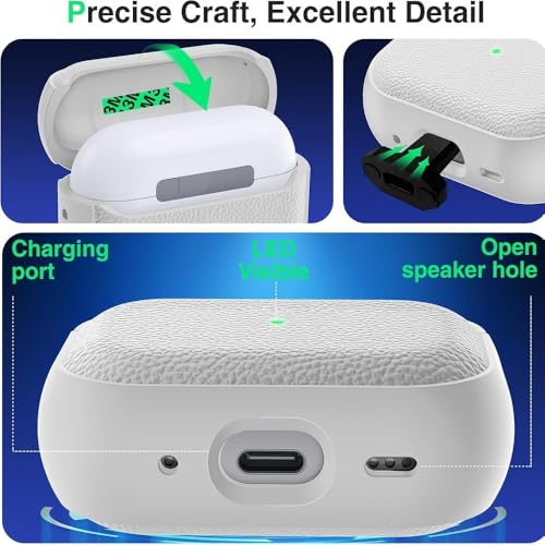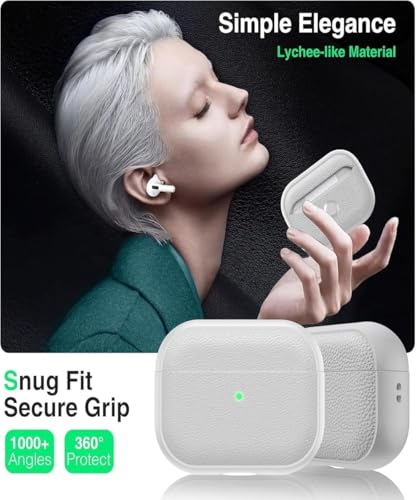 fashion mania - حافظة حماية متوافقة مع ايربودز برو 3 (2025) بتصميم غطاء محكم مصنوعة من الجلد الصناعي و TPU باللون الأبيض