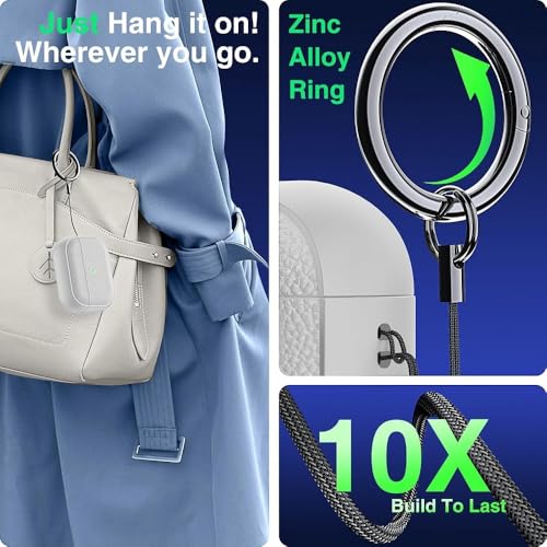 - حلقة تعليق متينة: تأتي كل حافظة من حافظات سماعات ايربودز برو الجيل الثالث مزودة بمشبك معدني مريح عند الاستخدام يساعدك على تعليقها بسهولة على شنطة الظهر أو سلسلة المفاتيح أو حزام البنطلون وما إلى ذلك لعدم فقدانها.
