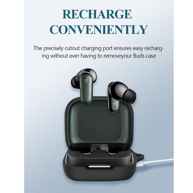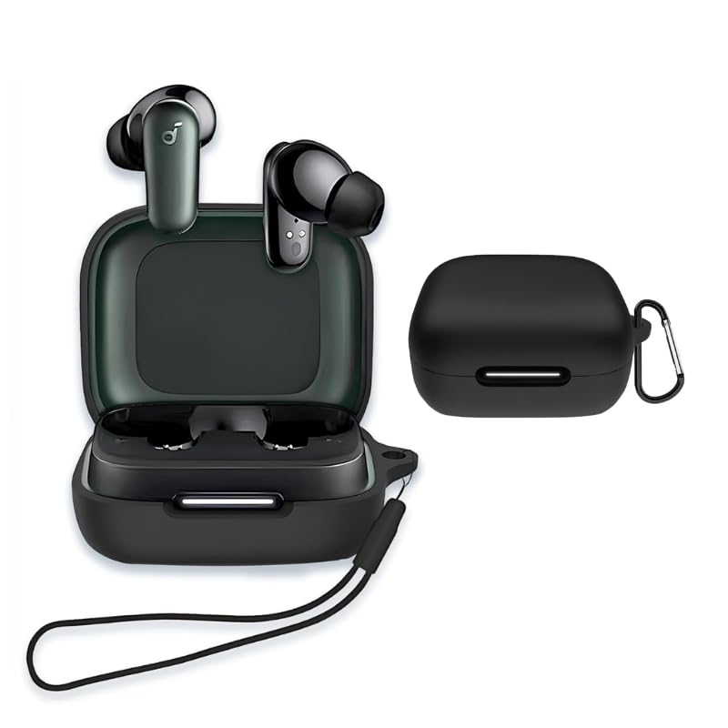 HAIDU - جراب 3 في 1 لسماعات اذن ساوند كور من انكر P30i - جراب حماية من السيليكون الناعم محمول ومقاوم للخدش والصدمات مع 1 × حلقة تعليق و1 × حبل قصير (أسود)