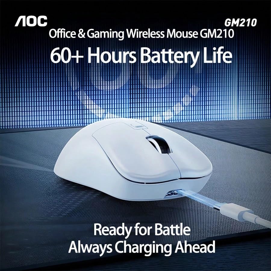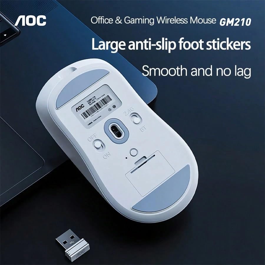 Generic - ماوس ألعاب GM210 بثلاث أوضاع (بلوتوث/ لاسلكي 2.4G/ سلكي) قابلة لاعادة الشحن مع شريط تثبيت وزر تشغيل/ إيقاف، ماوس بتصميم مريح خفيف الوزن تعمل حتى 60 ساعة وبدقة 10000 نقطة لكل بوصة من ايه او سي، أسود