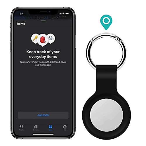 Yaxin - جراب سيليكون لجهاز ابل ايرتاج، غطاء واقي لجهاز التتبع من ابل لحماية مقتنياتك من الضياع، مزود بحلقة سلسلة مفاتيح (اسود)