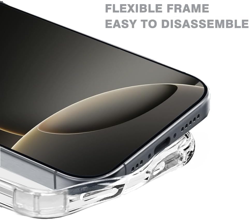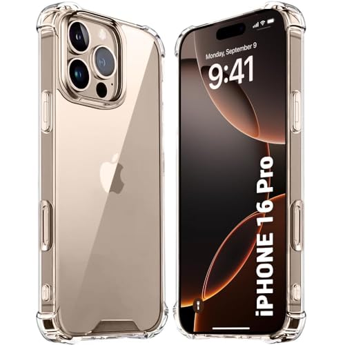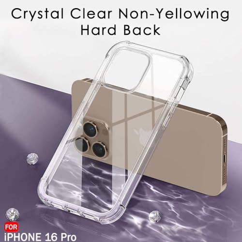 Generic - جراب حماية خلفي شفاف لموبايل ابل ايفون 16 برو مضاد للخدش من البولي يوريثين المقاوم للحرارة مع للزوايا الصدمات